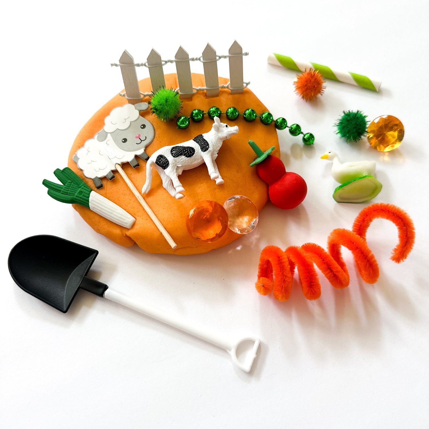 This Farm themed Doughie Jar is sure to get your little one playing! This kit contains playdough and fun goodies for hours of fun! Let your little ones imagination bloom as they play with animals, shovel, rocks, fun beads, blocks and more.