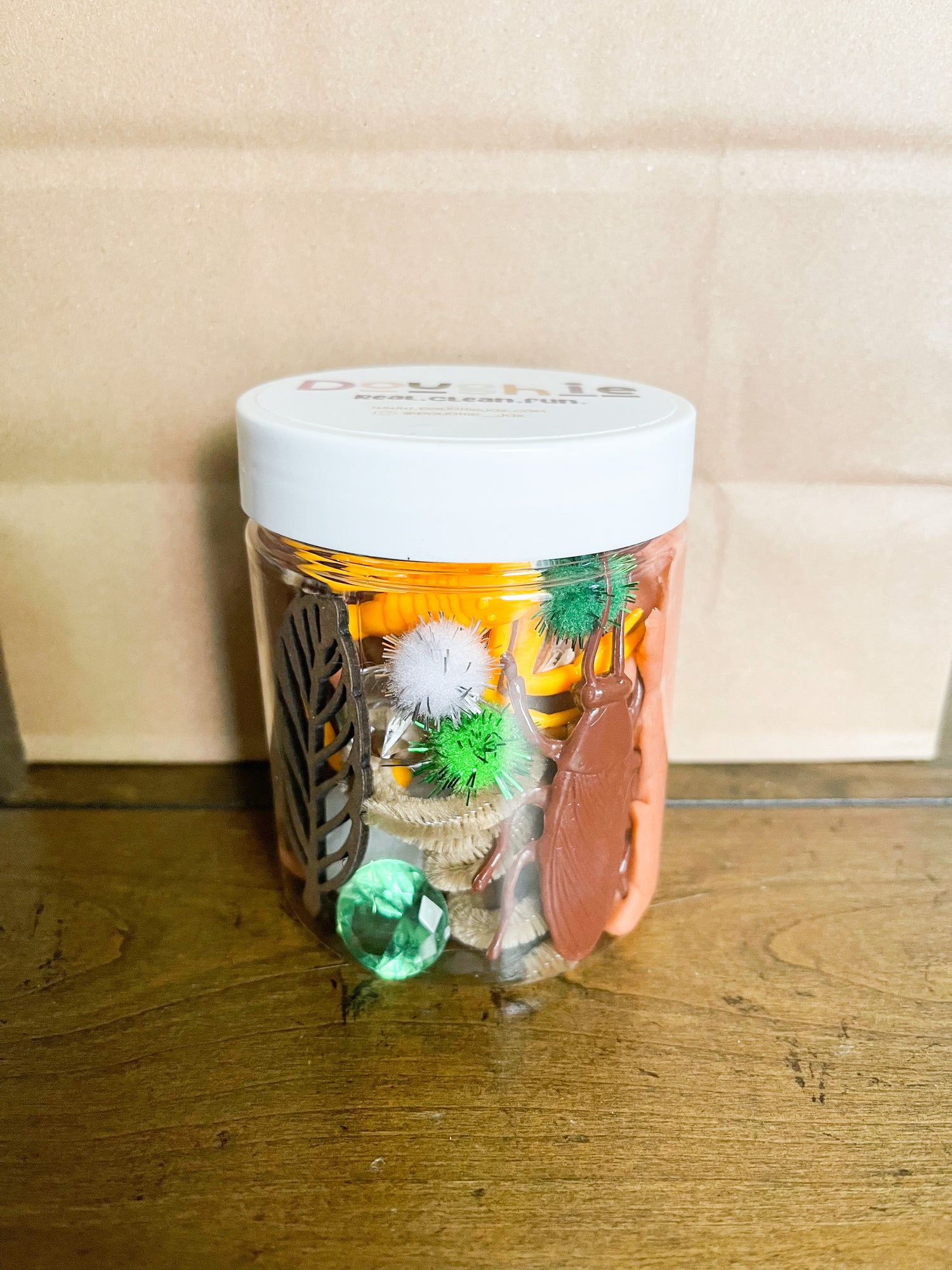 This BUGZ Doughie Jar is sure to get your little one playing! This kit contains playdough and fun goodies for hours of fun! Let your little ones imagination soar to the woods with BUGZ, rocks, fun beads acorns, pinecones, and more.
